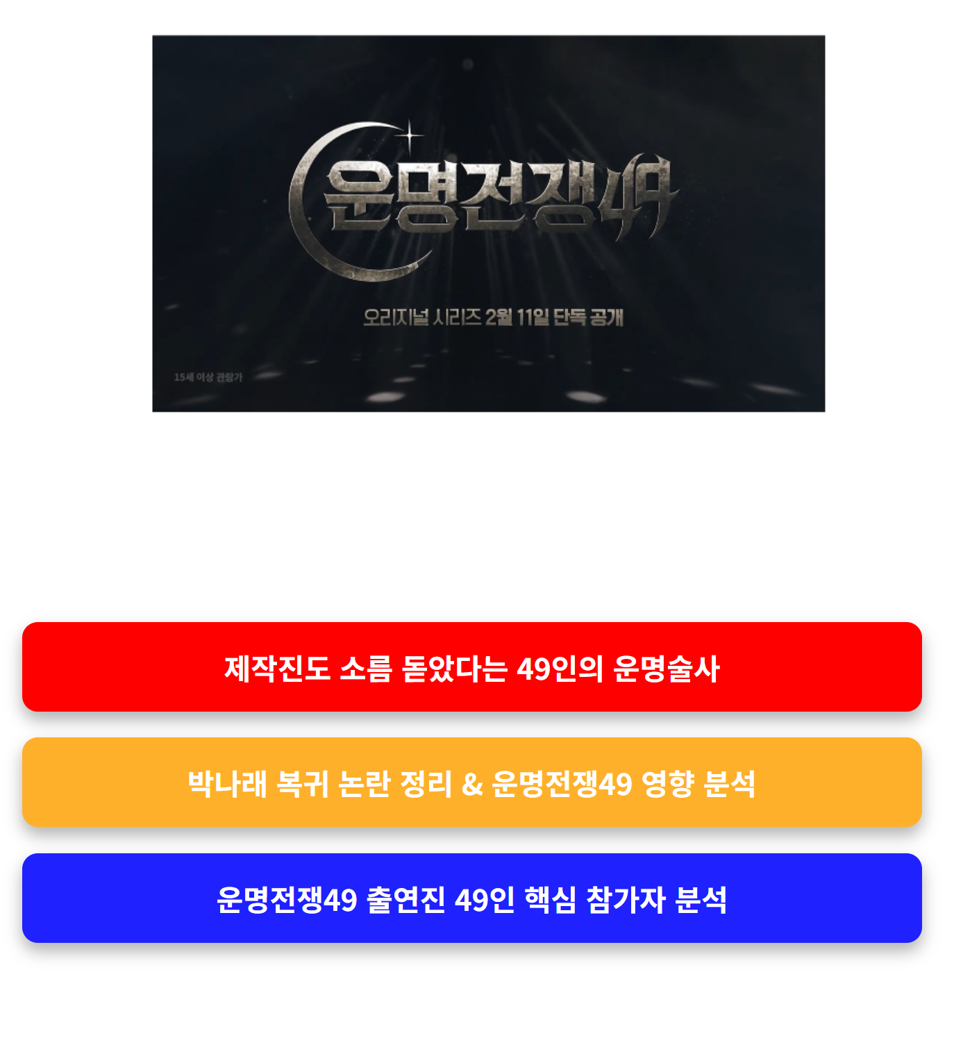 운명전쟁49 추천 포인트가 궁금해 검색하신 분들이 많으실 겁니다. 최근 운명전쟁49 추천 포인트 관련 키워드가 네이버에서 빠르게 상승 중입니다. 그래서 오늘은 운명전쟁49 추천 포인트를 중심으로 왜 이 예능이 화제가 되는지 정리해보겠습니다.
